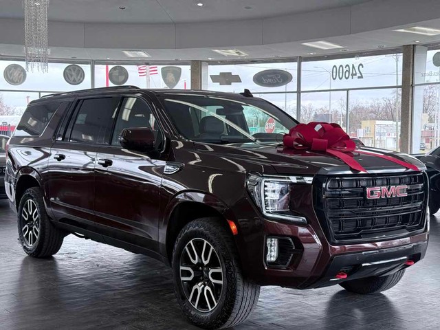 The 2023 GMC Yukon XL 4WD AT4 in Redwood Metallic exudes bold sophistication, complemented by a striking Jet Black interior. This full-sized SUV boasts a capable 5.3L V8 engine, delivering robust power ideal for both city drives and rugged terrains, thanks to its seamless Four Wheel Drive capabilities. With its commanding presence, the AT4 style enhances its adventurous appeal while retaining luxury. Inside, comfort meets innovation with features like heated seats and spacious 3rd row seating, accommodating family and friends with ease. Cutting-edge technology enhances safety and connectivity, offering a blind spot monitor, forward collision warning, and lane departure warning to keep drivers aware and secure. Bluetooth compatibility ensures seamless integration with smart devices, facilitating hands-free communication and entertainment on the go. Additional amenities include parking assist for tight spaces and rain sensing wipers that provide automatic clarity in adverse weather, while the power panoramic dual-pane sunroof invites natural light and fresh air into the cabin. The Max Trailering Package and towing capabilities cater to adventurous spirits with a penchant for exploration. Dealer-installed black roof rack cross rails, alongside the LPO Floor Liner Package, enhance versatility and organization, making the GMC Yukon XL a true blend of luxury, function, and rugged capability.