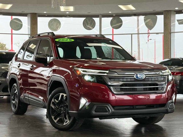 Our 2025 Subaru Forester Limited AWD explores with luxury and comfort in Crimson Red Pearl! Motivated by a 2.5 Liter BOXER 4 Cylinder supplying 180hp to a paddle-shifted Lineartronic CVT that puts bold adventure at your fingertips. Let your inner explorer run free with X-MODE and active torque vectoring and enjoy achieving nearly 33mpg on the highway in this All Wheel Drive SUV. Premium style and functionality come into play with our Forester’s hands-free liftgate, adaptive LED lighting, fog lamps, panoramic sunroof, raised roof rails, dark gray mirror caps, and eye-catching alloy wheels. Inside, our Limited cabin treats you to a one-touch folding back row, a heated leather steering wheel, dual-zone automatic climate control, keyless access, pushbutton ignition, and infotainment technology to keep you in touch and in tune with your world. Highlights include an 11.6-inch touchscreen, Apple CarPlay®, Android Auto®, WiFi compatibility, Bluetooth®, and a six-speaker audio system. Subaru is committed to keeping you safe with smart driver assistance from automatic emergency braking, automatic emergency steering, a rearview camera, adaptive cruise control, automatic braking, hill-descent control, blind-spot monitoring, and more. You can be well prepared for what comes next in our Forester Limited! Save this Page and Call for Availability. We Know You Will Enjoy Your CarDome Auto Sales Test Drive Towards Ownership!